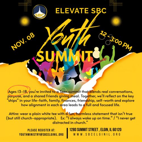 Ages 13–18 are invited to the Elevate SBC Youth Summit on Saturday, November